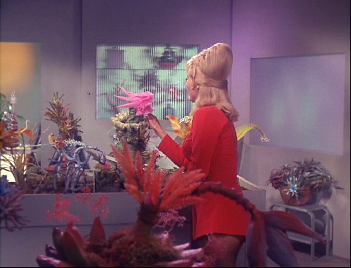 It turns out that she’s delivering the food to the botany department, to Sulu. They greet each other, and Rand greets one of the plants as Beauregard (Sulu correcting her saying it’s name is Gertrude). The plant is moving, and that makes it really, really obvious that it’s a dude’s hand in a glove.