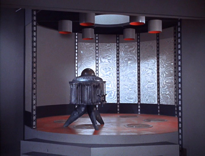 It is not, in fact, a garbage can on a tripod, but is rather a flight recorder from a very old starship. Spock points out that it’s all burned up, which indicates the ship it was on was likely destroyed. Kirk hopes the tapes are intact, and Scotty starts retrieving the information.