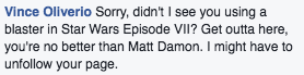 This guy, this fucking guy, is apparently so divorced from reality that he somehow thinks that Ridley using a fake laser gun in a goddamn movie suddenly invalidates what she’s saying above.